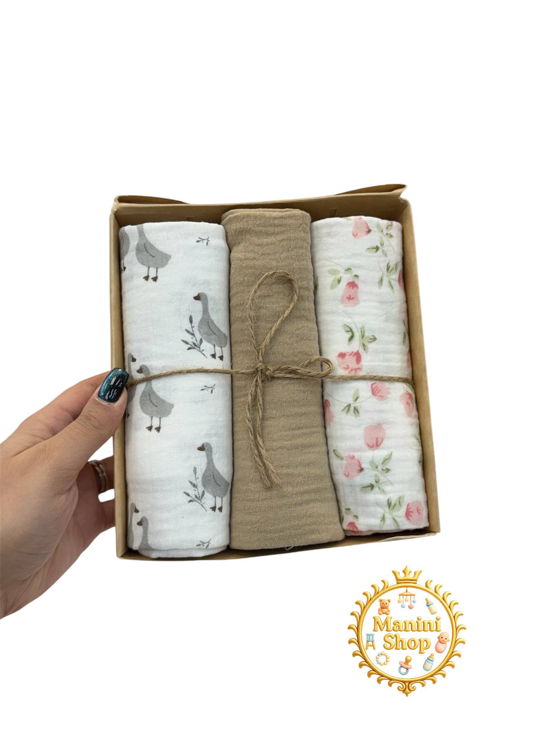 دستمال خشک کن موسلین 3 تایی کارامل 90×90 ترکیه ای و نخ پنبه