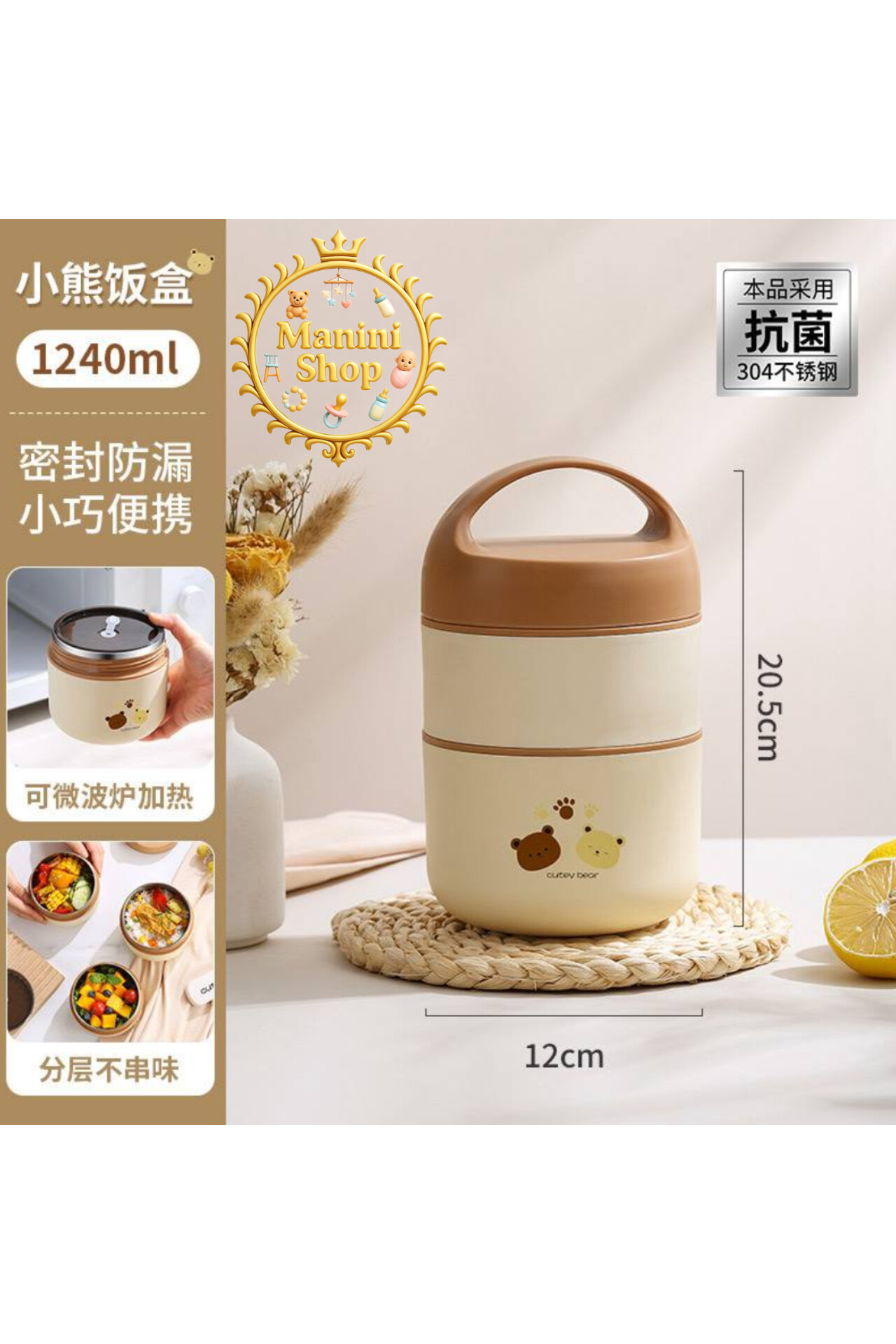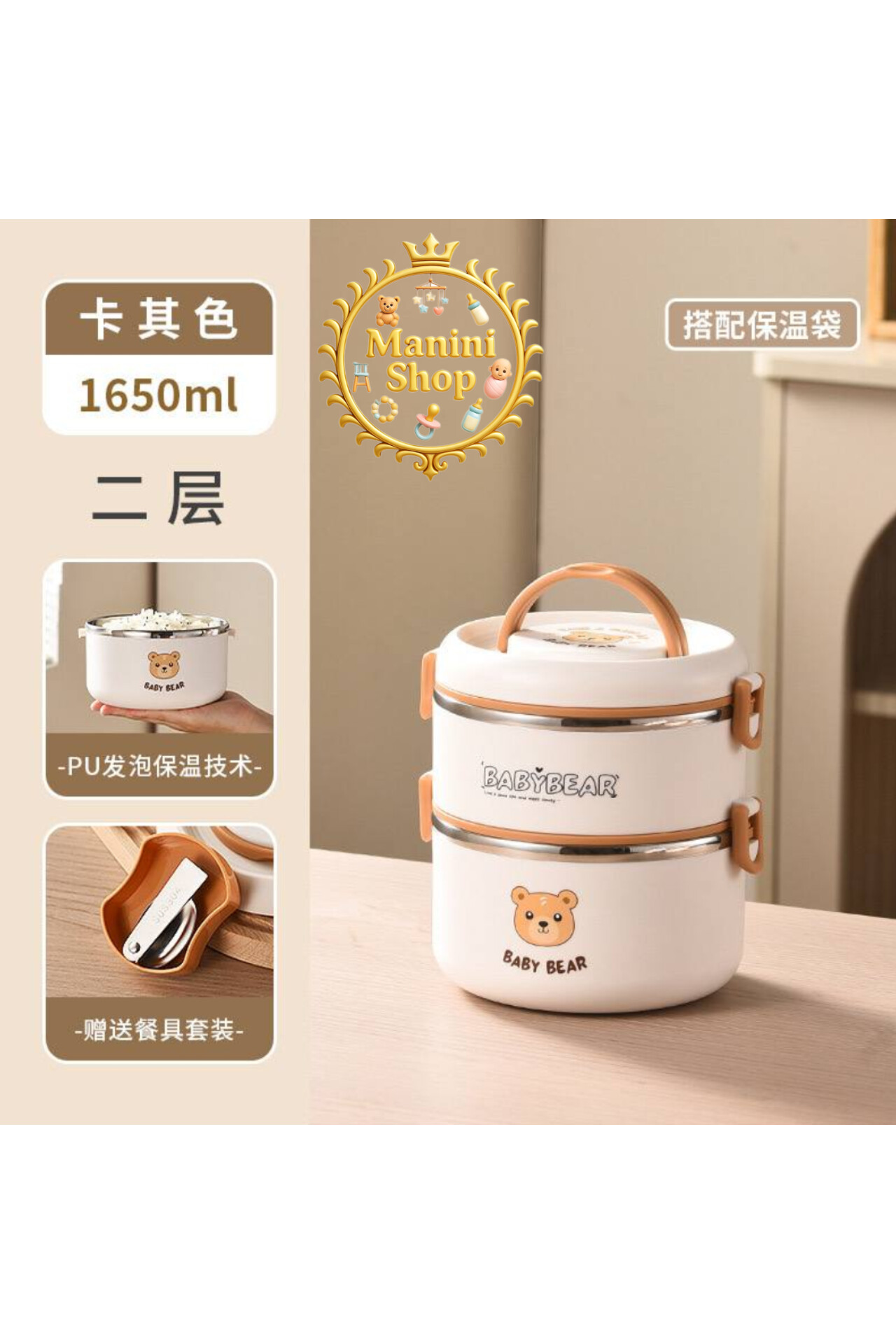 ظرف غذای تدی سفید BABY BEAR دو طبقه
