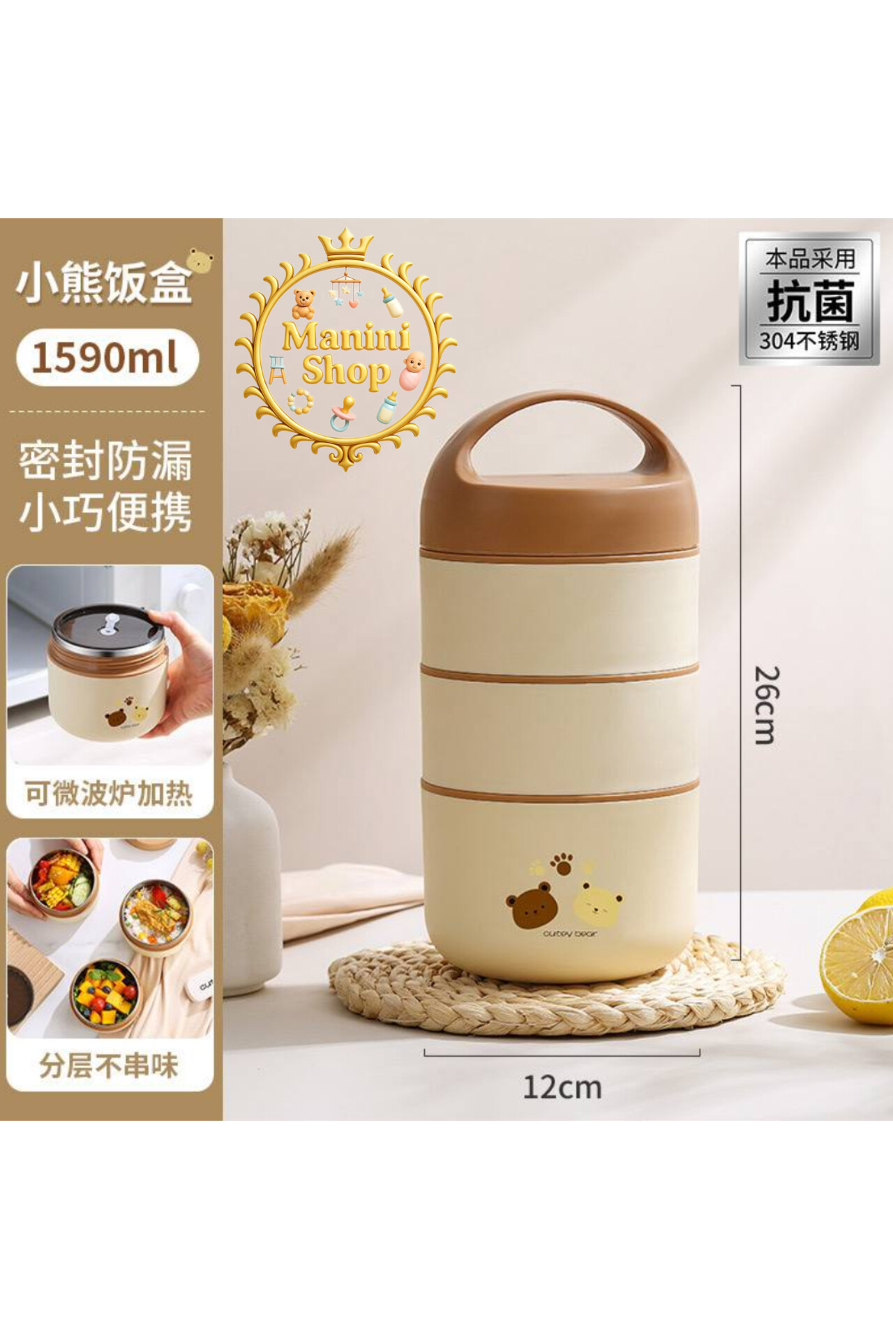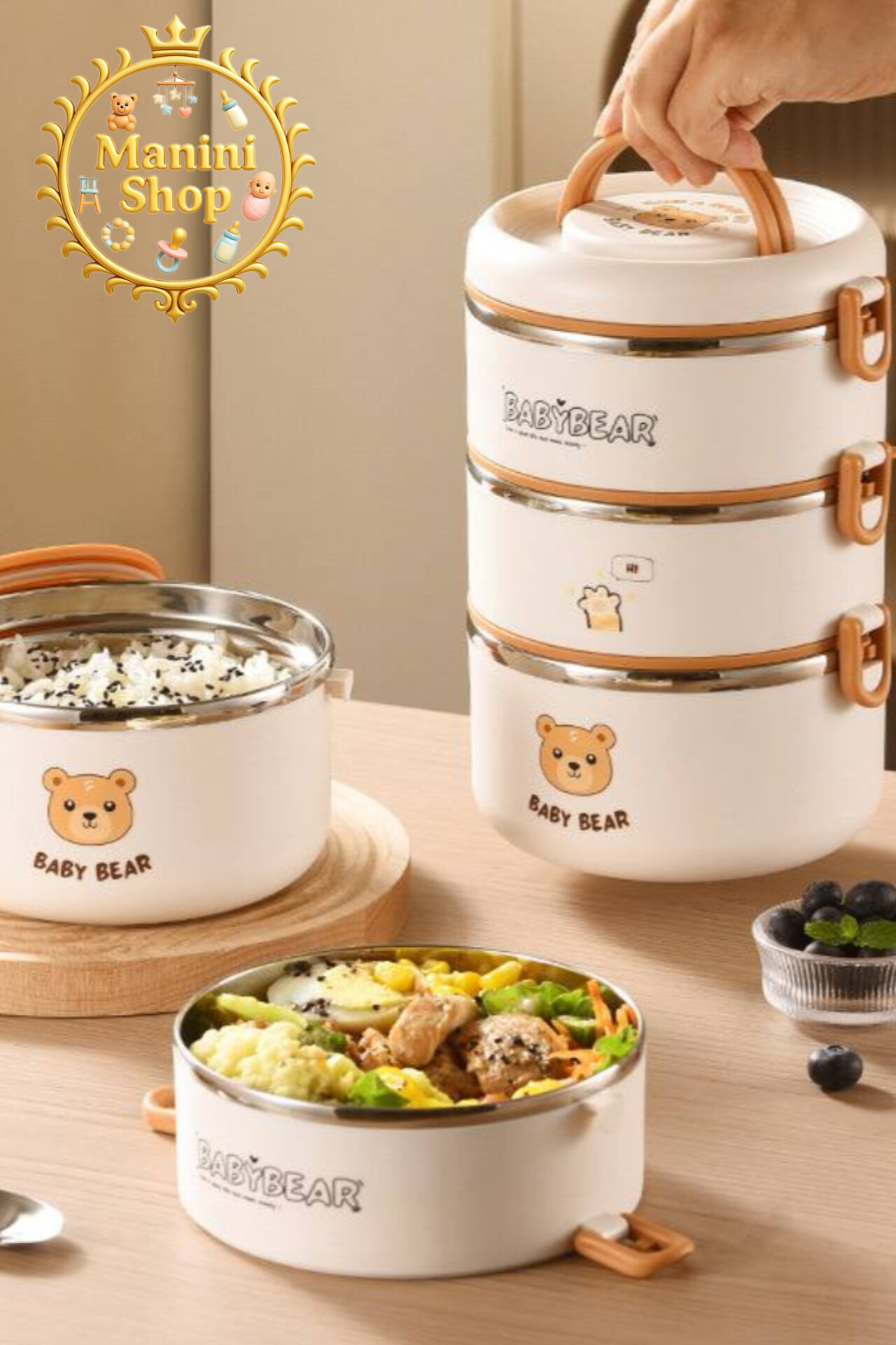 ظرف غذای تدی سفید BABY BEAR سه طبقه
