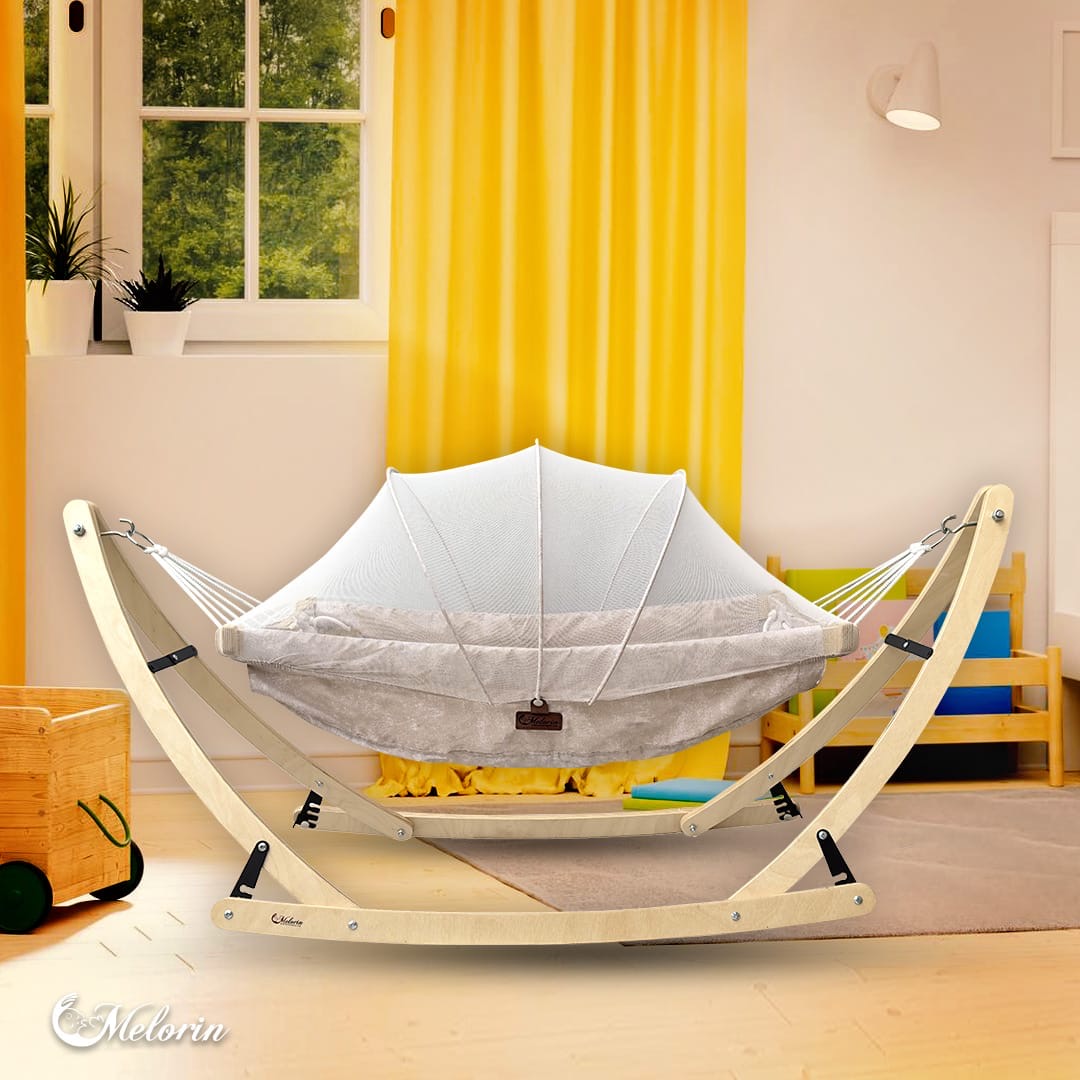 گهواره ننو سنتی چوب راش با پارچه با کیفیت برند ملورین Melorin