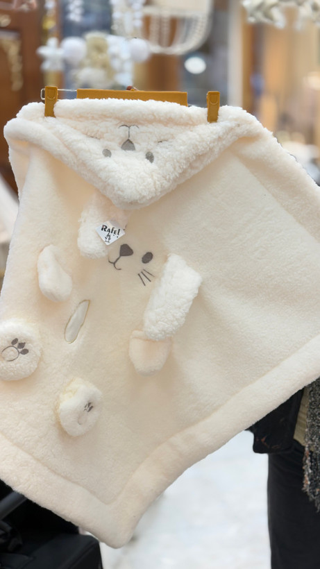 پتوی دورپیچ نوزادی کلاه‌دار طرح خرگوش جنس تدی برند رافل Rafel