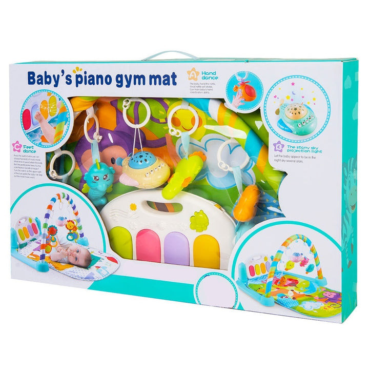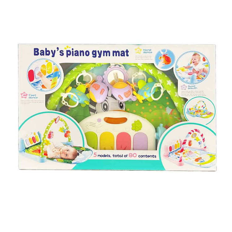 تشک بازی موزیکال پیانو دار مدل بلوتوثدار دارای ابعاد بستهبندی 41.5*9.5*63 سانتیمتری میباشد. جنس جغجغههای آن از پلاستیک مقاوم و نشکن ABS است. امکان پخش موسیقی کوتاه مدت و بلند مدت تا 15 دقیقه را دارد. دارای موزیکهای ملایم و آرامش بخش، صدای طبیعت، صدای حیوانات و صدای طبل است. با استفاده از ریموت کنترل آن میتوان موزیک پخش شده را عوض کرد. دارای قابلیت اتصال به بلوتوث و رقص نور است. جزء زیباترین و سرگرمکنندهترین تشکبازیهای کودک است. به خوبی حواس 5 گانه کودک را تقویت میکند. باتریهای استفاده شده برای این تشک بازی موزیکال از نوع باتری قلمی است. تولید کشور چین است.