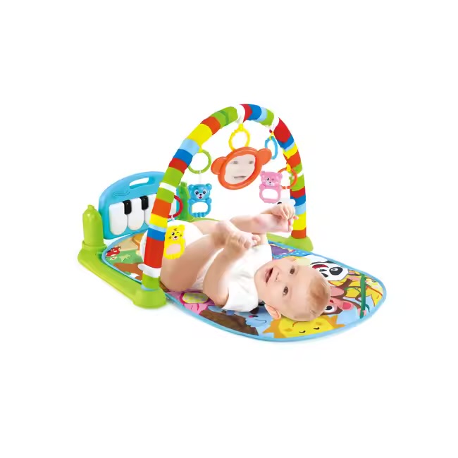 تشک بازی موزیکال پیانودار طرح حیوانات دارای جغجغههایی از جنس پلاستیک مقاوم و نشکن ABS است. امکان پخش موسیقی کوتاه مدت و بلند مدت تا 15 دقیقه را دارد. جزء زیباترین و سرگرمکنندهترین تشکبازیهای کودک است. به خوبی حواس 5 گانه کودک را تقویت میکند. باتریهای استفاده شده برای این تشک بازی موزیکال از نوع باتری قلمی است. تولید کشور چین است.