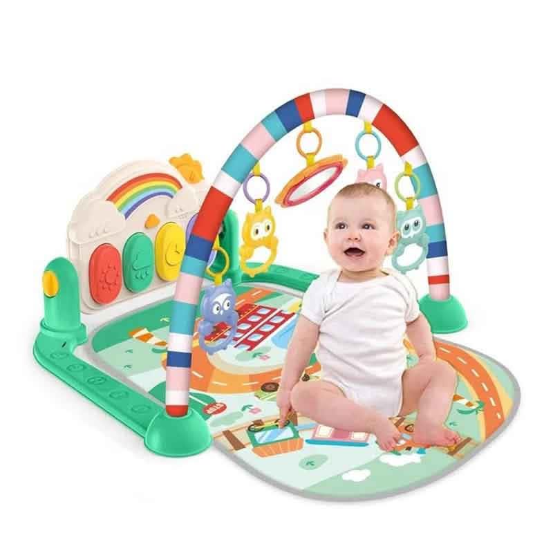 تشک بازی موزیکال پیانو دار برند هانگر Huanger طرح رنگین کمان دارای وزن یک کیلوگرمی و ابعاد 40*58*75 سانتیمتری است. ابعاد بستهبندی آن نیز 29*8*37 سانتیمتر میباشد. جنس جغجغههای آن از پلاستیک مقاوم و نشکن ABS است. امکان پخش موسیقی کوتاه مدت و بلند مدت تا 15 دقیقه را دارد. جزء زیباترین و سرگرمکنندهترین تشکبازیهای کودک است. به خوبی حواس 5 گانه کودک را تقویت میکند. باتریهای استفاده شده برای این تشک بازی موزیکال 2 عدد باتری قلمی است. تولید کشور چین است.