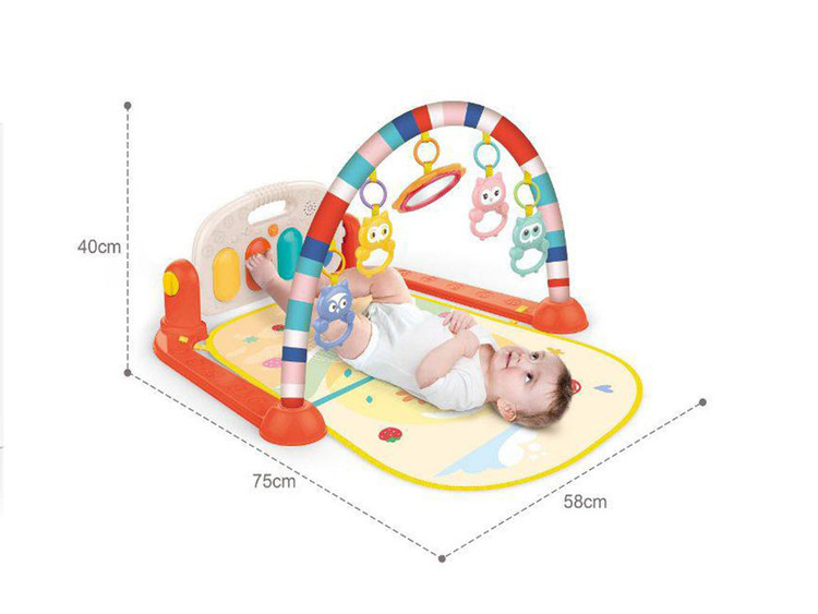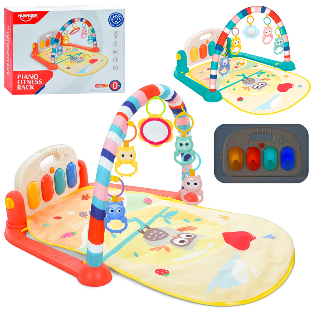 تشک بازی موزیکال پیانو دار برند هانگر Huanger طرح جغد دارای وزن یک کیلوگرمی و ابعاد 40*58*75 سانتیمتری است. ابعاد بستهبندی آن نیز 29*8*37 سانتیمتر میباشد. جنس جغجغههای آن از پلاستیک مقاوم و نشکن ABS است. امکان پخش موسیقی کوتاه مدت و بلند مدت تا 15 دقیقه را دارد. جزء زیباترین و سرگرمکنندهترین تشکبازیهای کودک است. به خوبی حواس 5 گانه کودک را تقویت میکند. باتریهای استفاده شده برای این تشک بازی موزیکال 2 عدد باتری قلمی است. تولید کشور چین است.
