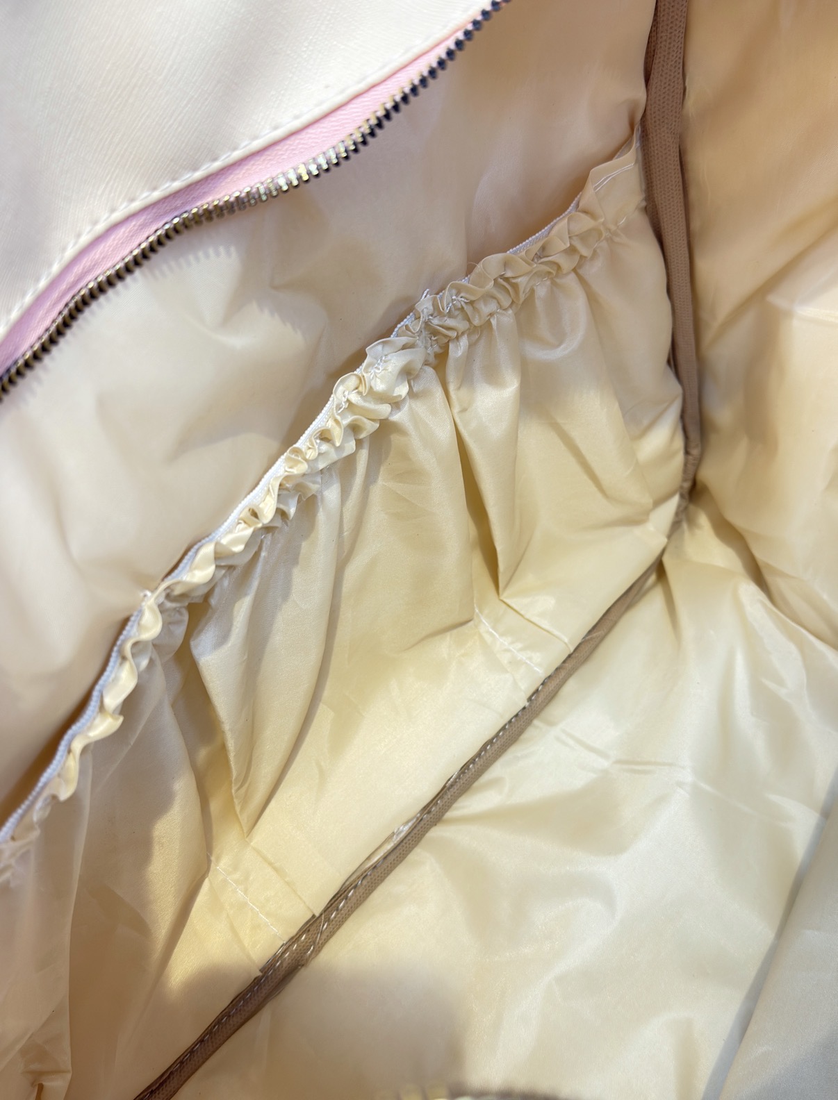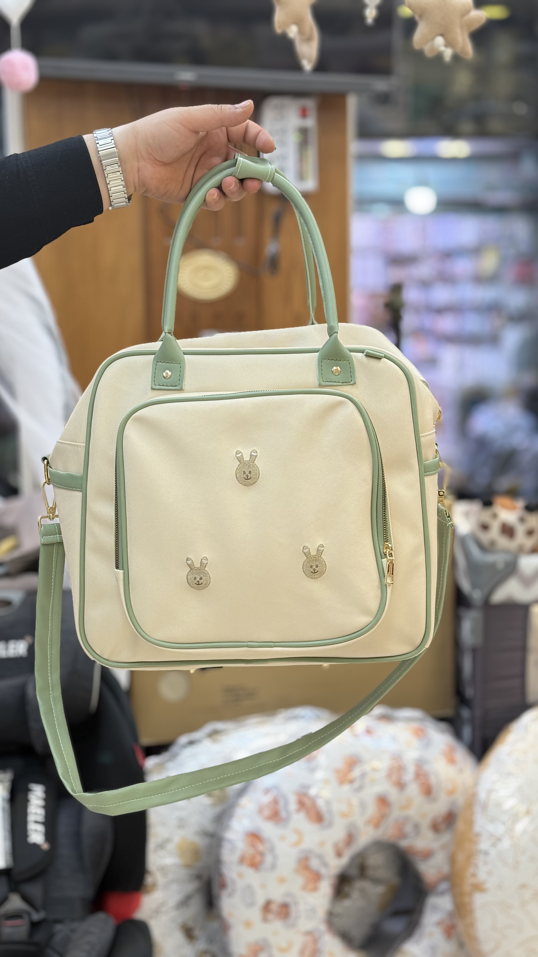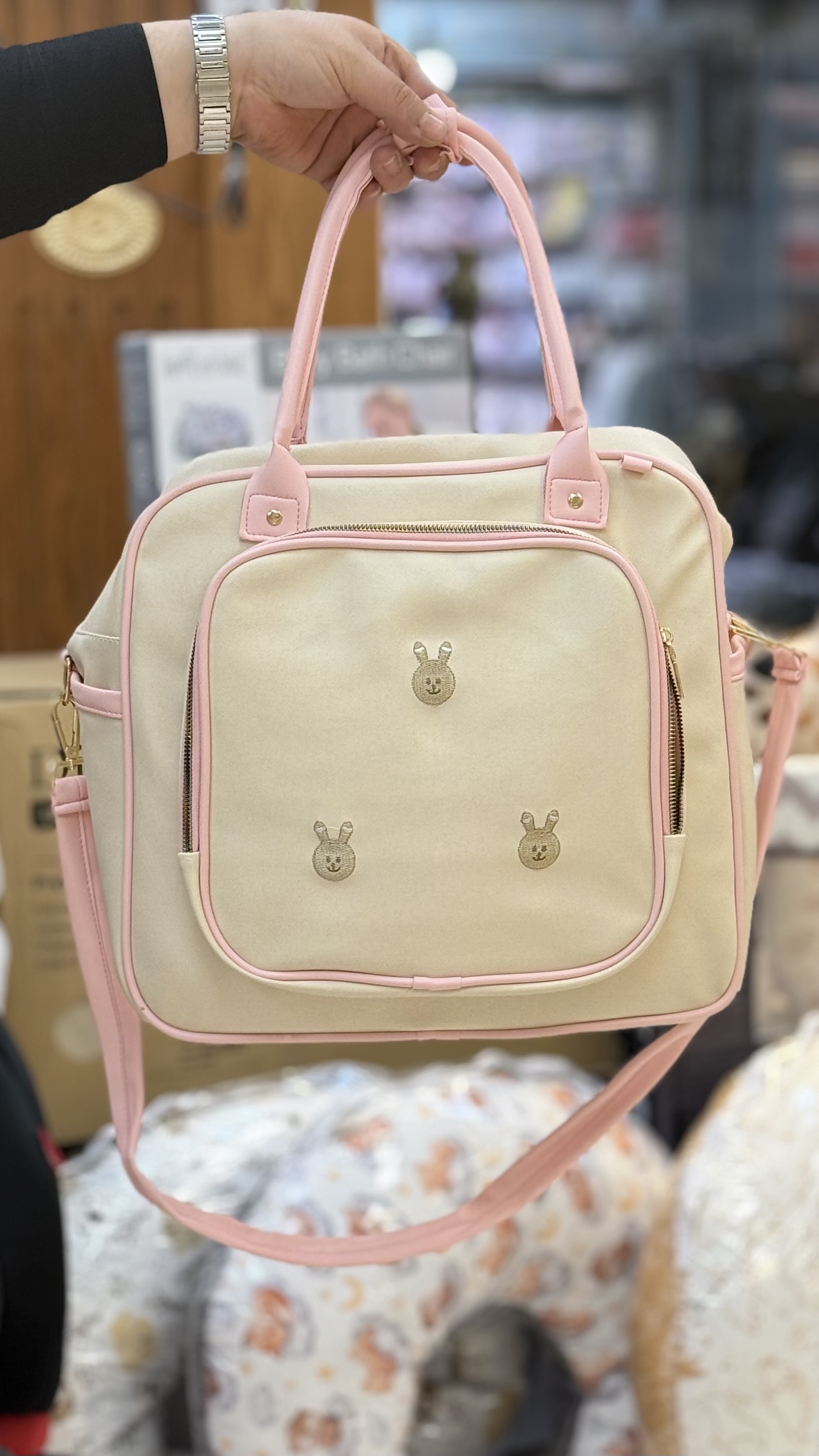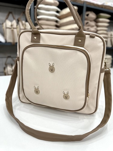 جنس بدنه ساک لوازم نوزاد دوشی چرم با گلدوزی خرگوش برند Arina Room از چرم PU وارداتی است. در نتیجه کاملا ضد آب و مقاوم است. آستر درون آن نیز از سوییت درجه یک تولید شده که خاصیت ضد آب دارد. دارای گلدوزی با طرحهای مختلفی همچون قلب، تدی تاجدار، اسب و گندم ، خرس و گندم، اردک، پاپیون و رنگین کمان و ... است. زیپ جلوی این کیف بیمارستانی نوزادی در مقابل حرارت عایق است. با وجود طراحی ارگونومیک این ساک، حمل و جابهجا کردن آن برای والد کار راحتی است. این محصول به صورت دوشی و دستی قابل استفاده است. با وجود جیبها و فضای زیاد این ساک همه وسایل مورد نیاز نوزاد برای مهمانی یا مسافرت رفتن درون آن جای میگیرد.