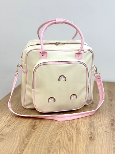جنس بدنه ساک لوازم نوزاد دوشی چرم با گلدوزی رنگینکمان برند Arina Room از چرمPU وارداتی است. در نتیجه کاملا ضد آب و مقاوم است. آستر درون آن نیز از سوییت درجه یک تولید شده که خاصیت ضد آب دارد. دارای 3 رنگ مختلف کرم، سبز و صورتی است. زیپ جلوی این کیف بیمارستانی نوزادی در مقابل حرارت عایق است. با وجود طراحی ارگونومیک این ساک، حمل و جابهجا کردن آن برای والد کار راحتی است. این محصول به صورت دوشی و دستی قابل استفاده است. با وجود جیبها و فضای زیاد این ساک همه وسایل مورد نیاز نوزاد برای مهمانی یا مسافرت رفتن درون آن جای میگیرد.