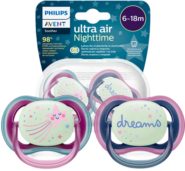 قیمت پستانک 18-6 ماه فیلیپس اونت مدل اولترا ایرنایت تایم طرح ستاره PHILIPS AVENT