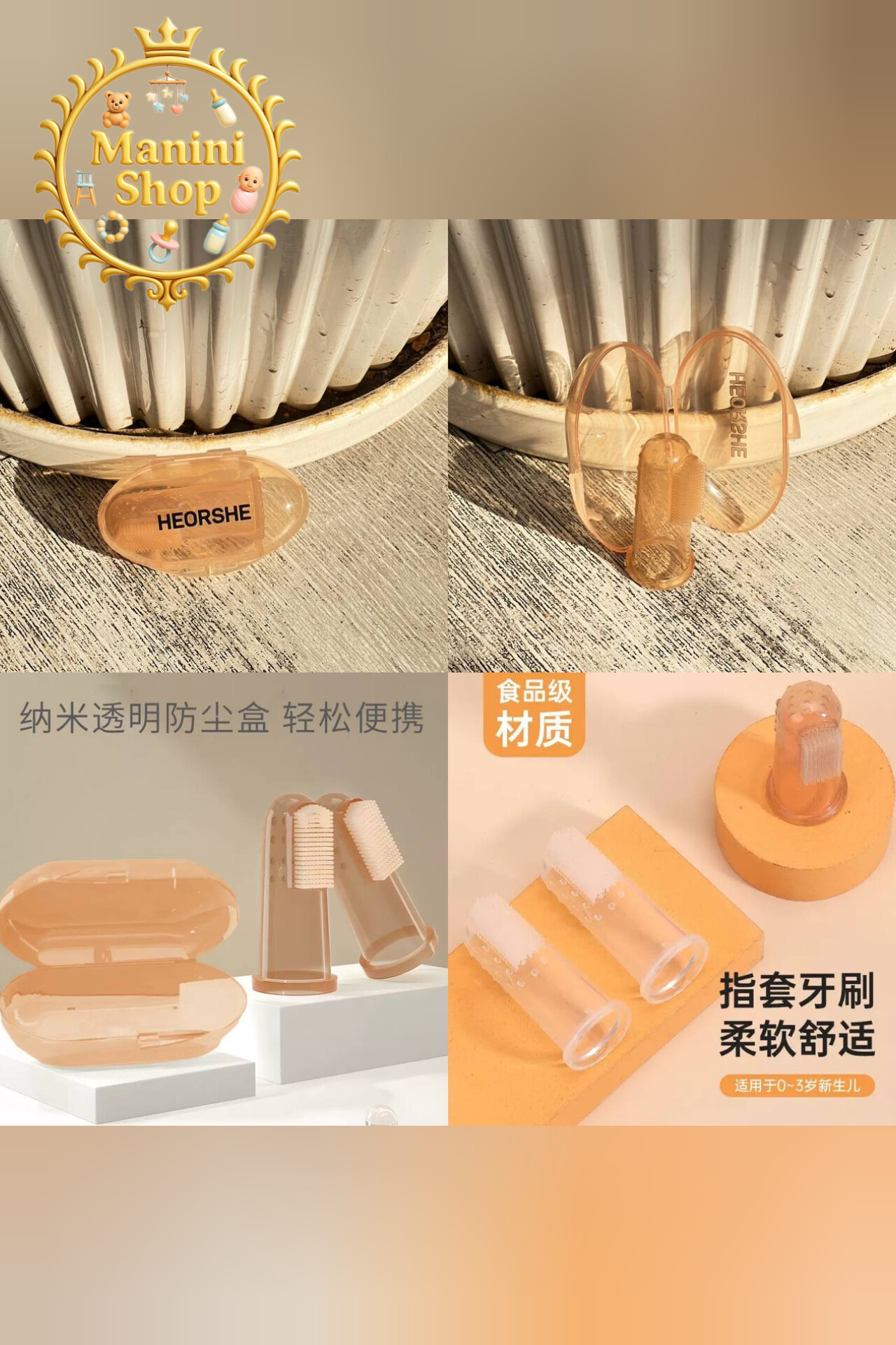 مسواک انگشتی هی اور شی قابدار از مانی نی شاپ، ترکیبی از ایمنی، کیفیت و طراحی فاخر است که والدین مشکلپسند و علاقهمند به سیسمونی لوکس را کاملاً راضی میکند.