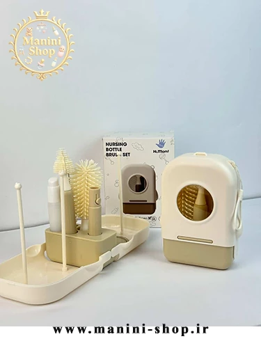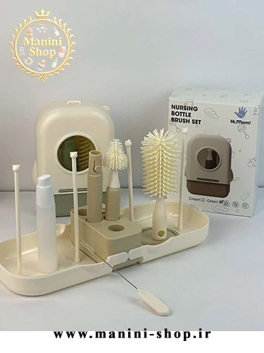 جنس برسهای ست شیشهشور سیلیکونی آبچکان دار پرتابلی Hi mom ازسیلیکون نرم، منعطف و بسیار با کیفیتی است. این مجموعه هر آنچه که شما برای شستن شیشه شیر نوزاد خود نیاز داشته باشید را در خود دارد. دارای 3 برس مختلف، ظرف اسپری مایع استریل، استند آبچکان و باکس حمل است. با وجود این باکس حمل قفل دار همه وسایل کاملا تمیز و مرتب داخل آن جای گرفته و گم نمیشوند. از برس کوچک آن جهت شستشوی سر شیشه استفاده میگردد. با وجود اسپری مایع استریل کننده، شما قادر خواهید بود که شیشه و لوازم تغذیه نوزاد را با دقت ضد عفونی کنید. برس نیشور آن دارای شکل باریک و خاصی است. با آن میتوانید نیهای نوزاد و کودک را کاملا تمیز کرده و بشویید. با وجود استندهای داخل باکس میتوان شیشه و سر شیشه را به طور مجزا روی آن قرار داده تا خشک شده و به راحتی در دسترس باشند.