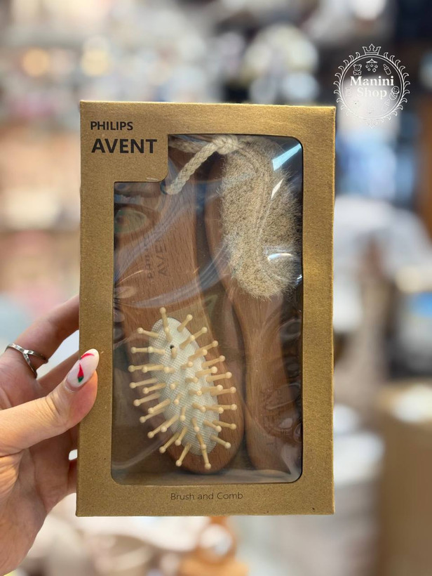 اقلام همراه: برس الیاف نرم طبیعی، ۲) شانه چوبی ماساژور
