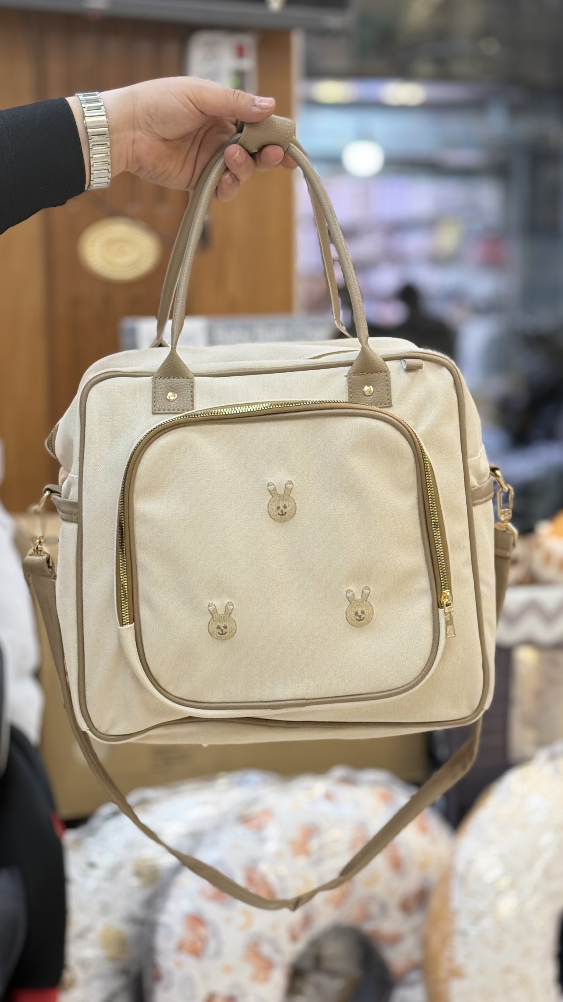کیف لوازم چرم با گلدوزی خرگوش با بند رودوشی
