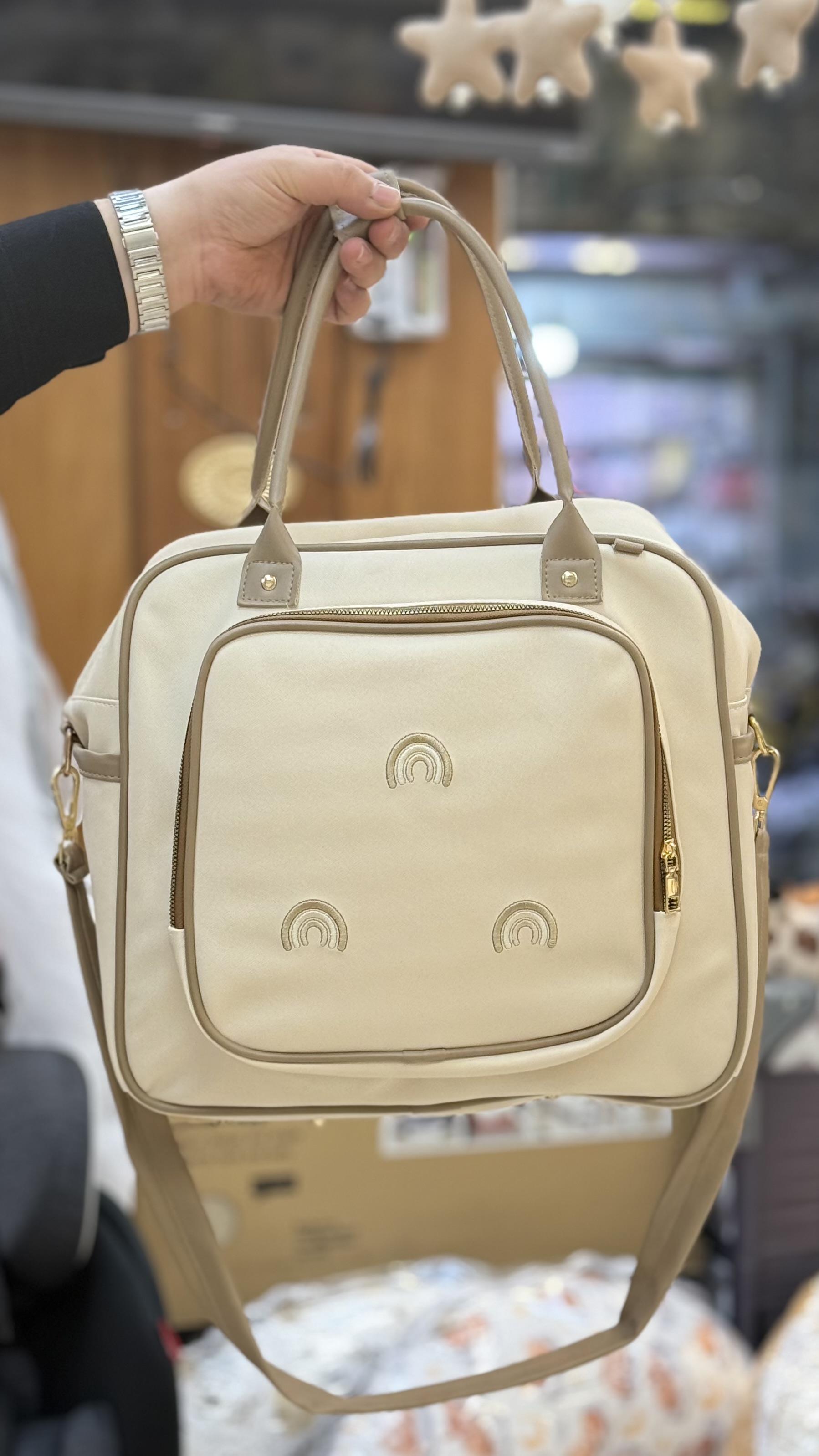 کیف لوازم چرم با گلدوزی رنگین کمان با بند رودوشی