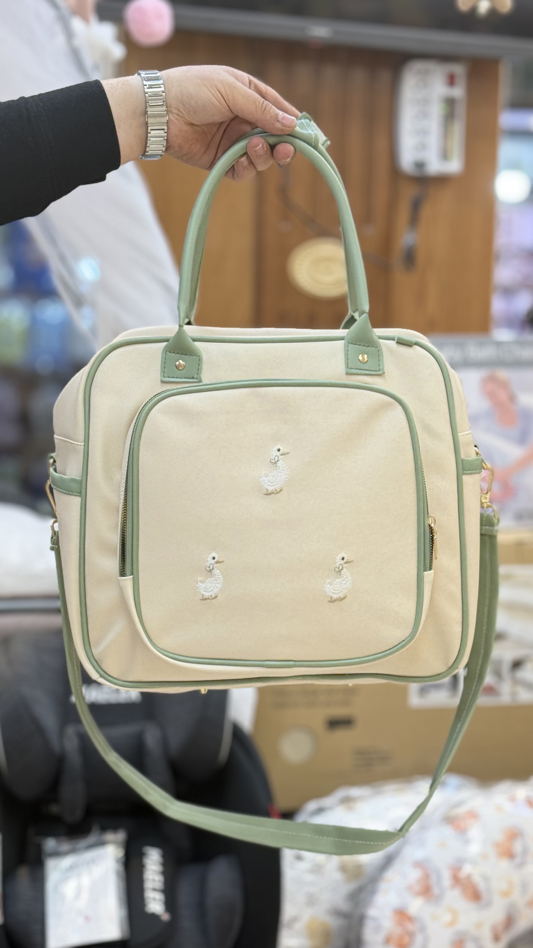 کیف لوازم چرم با گلدوزی اردک با بند رودوشی